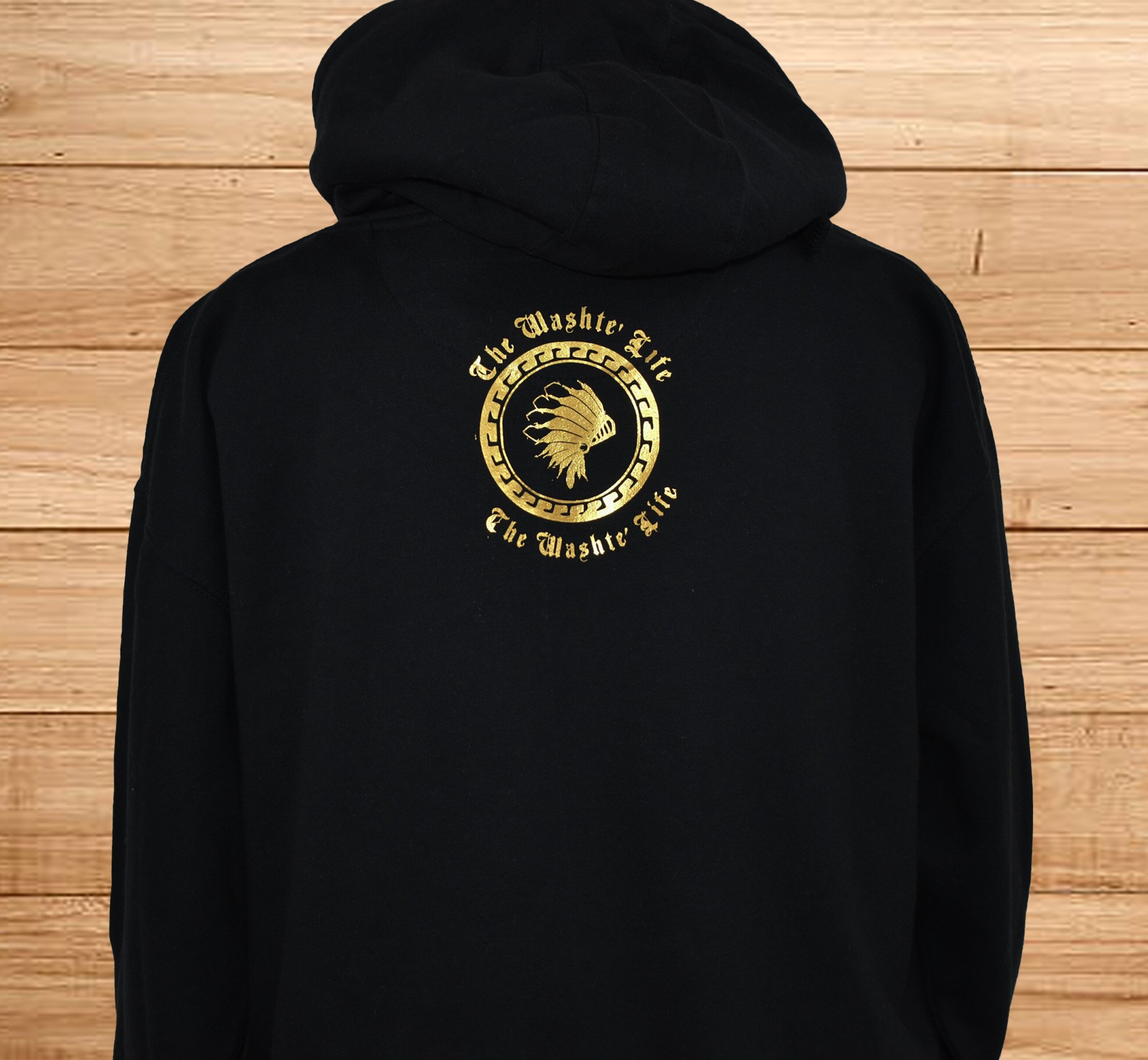 Front pouch pocket. Dual-ply self-fabric hood with matching drawcord and metal grommets